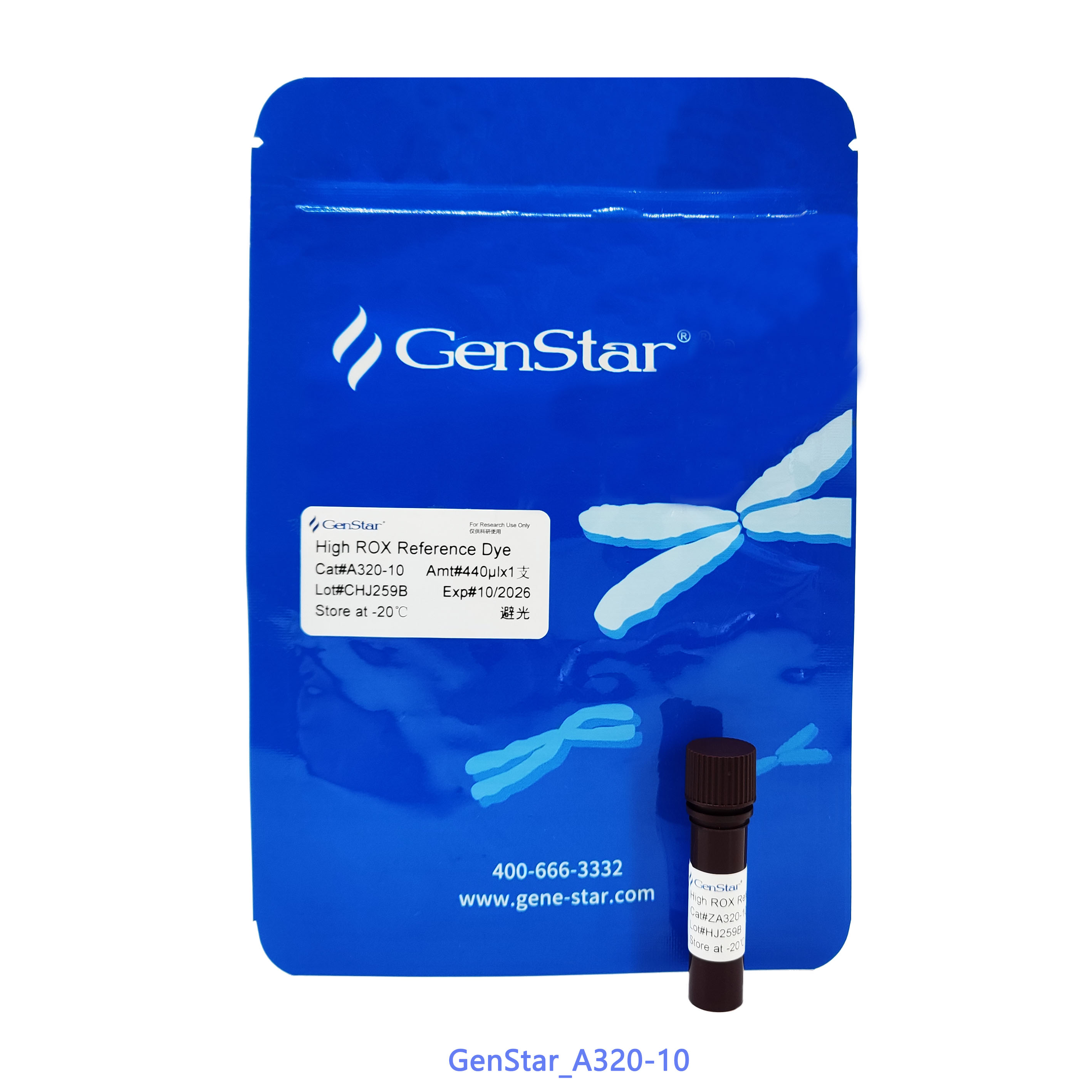 High ROX Reference Dye 和 Low ROX Reference Dye 在 580 nm 左右處有最大吸收,不參與 PCR 反應(yīng),用于校正定量 PCR 反應(yīng)時(shí)孔與孔之間產(chǎn)生的熒光信號(hào)值誤差。High ROX Reference Dye 適用于 ABI PRISM 7000/7300/7900HT 和 StepOnePlusTM Real-Time PCR System 等熒光定量儀。Low ROX Reference Dye 適用于 ABI PRISM 7500/7500 Fast Real-Time PCR System 和 Stratagene 公司的 Mx3000P 等熒光定量儀。