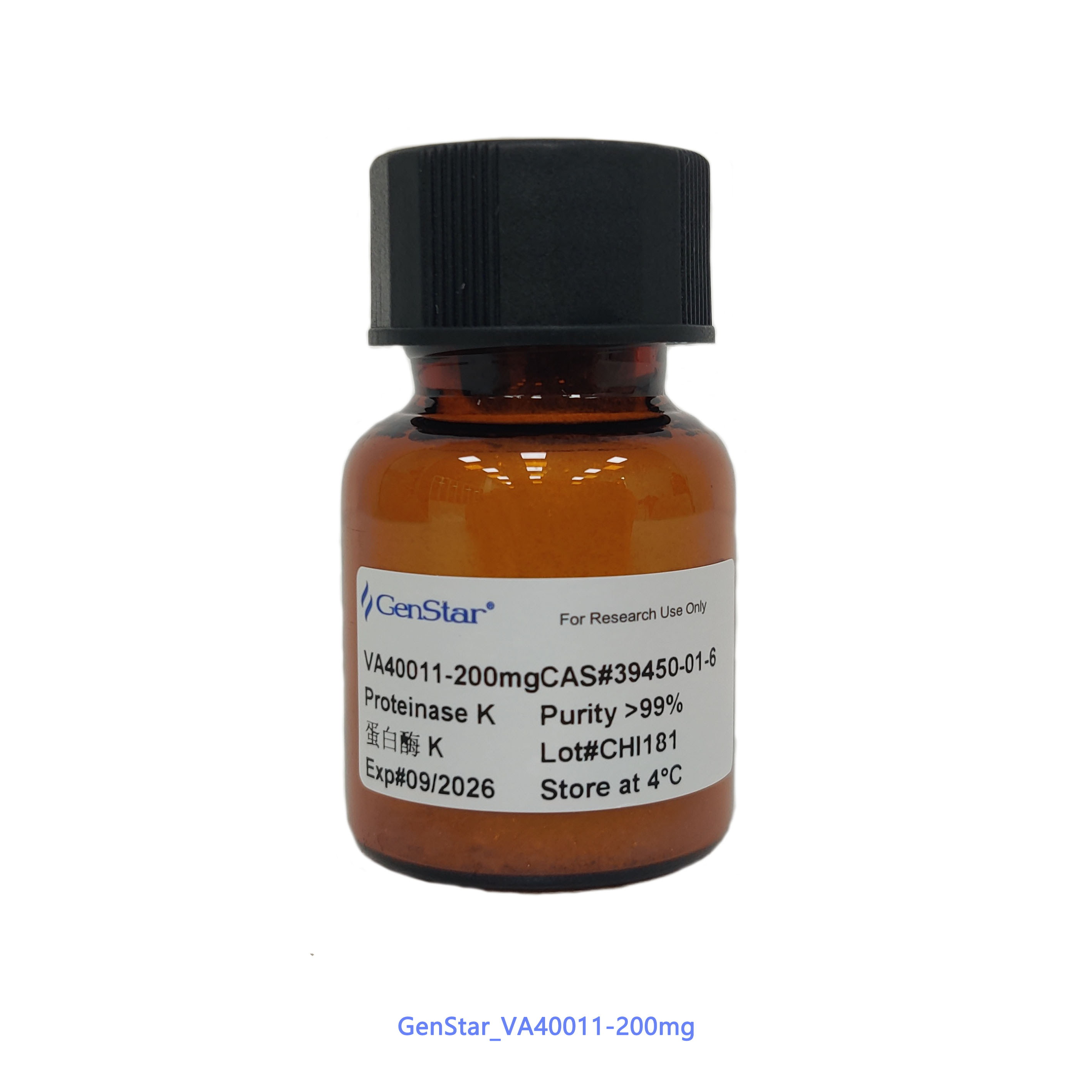 單位活性定義 在 37℃ pH 7.5 條件下,每分鐘可水解酪蛋白底物生成1μmol 酪氨酸的蛋白酶 K 的量定義為一個單位(U)