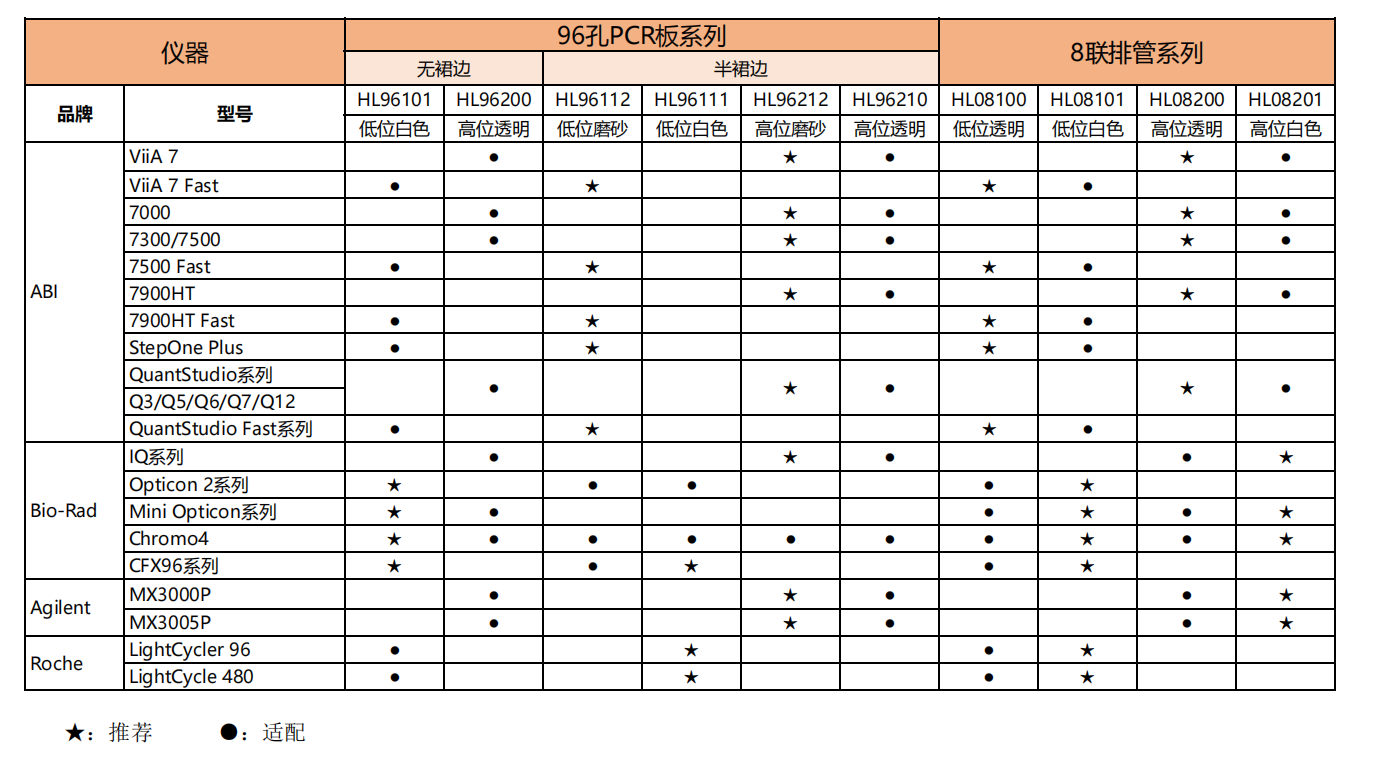 Bio-Rad 的 IQ 系列、 Mini Opticon 系列、Chromo4;Agilent 的 MX3000P、MX3005P