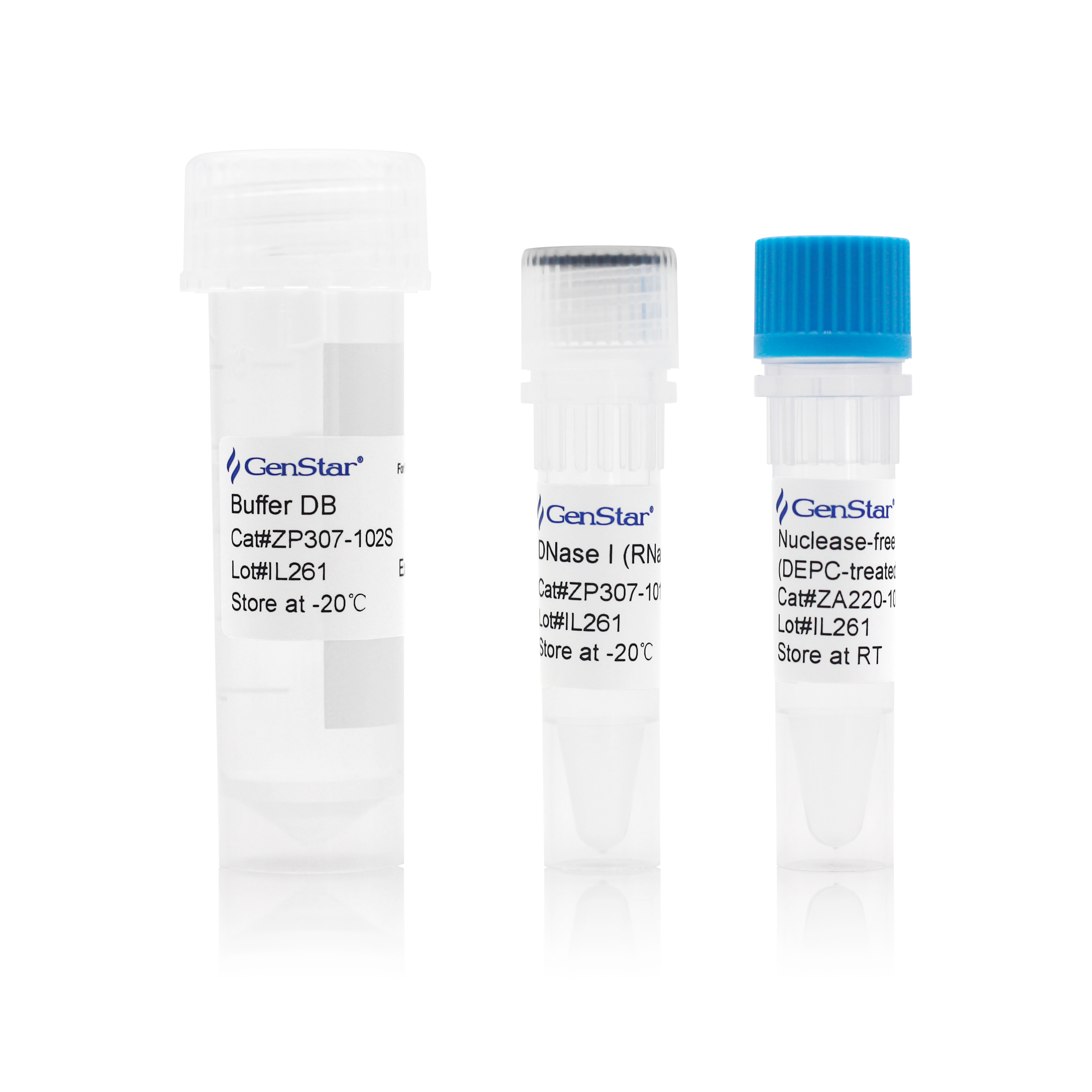 本品能有效去除 DNA,既可用于離心柱吸附法提純 RNA(如 GenStar StarSpin 系列)中 DNA 的消化,也可直接用于 RNA 溶液中 DNA 的消化。