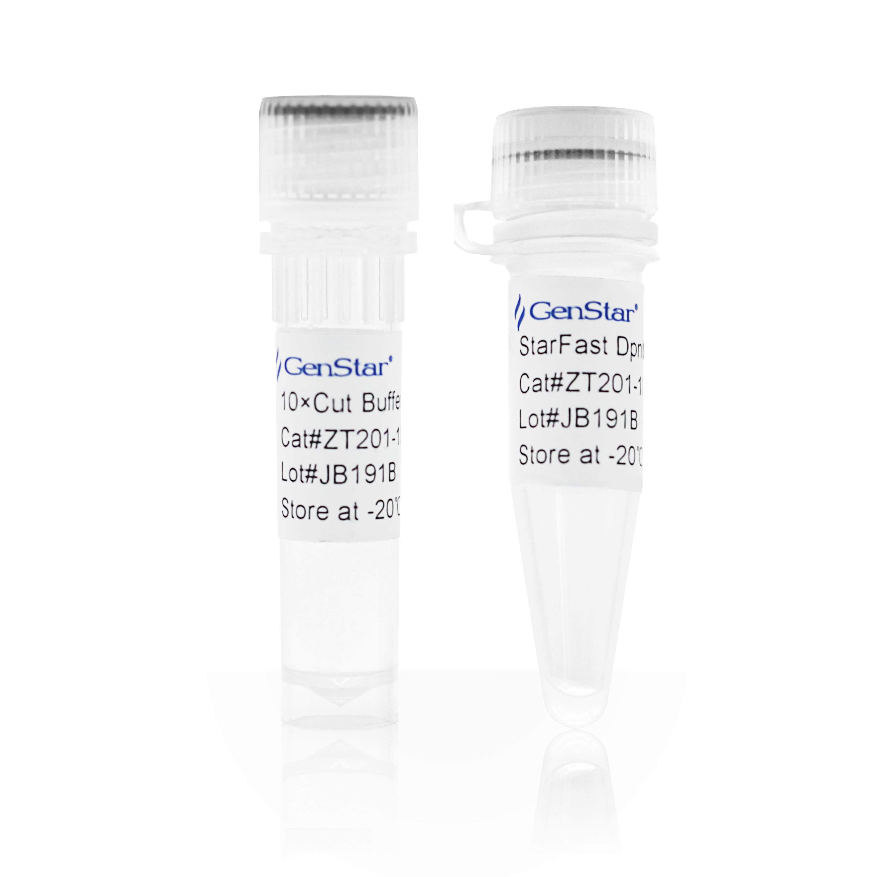 StarFast DpnI 是經(jīng)過基因工程重組的快速限制性內(nèi)切酶,適用于質(zhì)粒 DNA、PCR 產(chǎn)物或基因組 DNA 等的快速酶切。在 10×Cut 緩沖液中具有優(yōu)良的活性,能夠在 5-15 min 內(nèi)完成酶切。此外,去磷酸化、連接試劑在 10×Cut 緩沖液中均具有 100% 活性,支持一管化反應(yīng),提升“酶切-修飾-連接”的體驗。