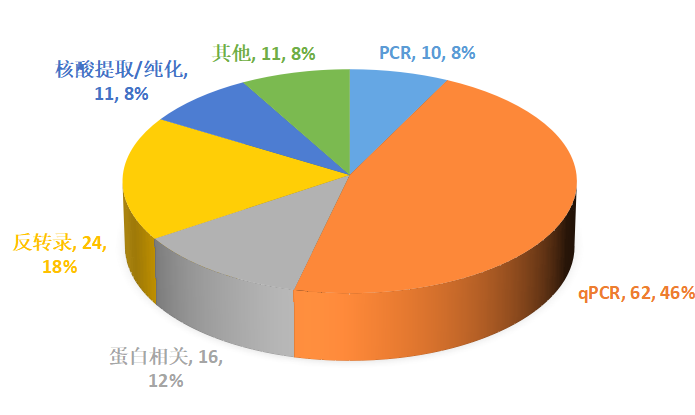 GenStar產(chǎn)品涉及163個;共有133篇SCI文章,其中IF>5的文章72篇,本季度IF值最高達39.3。qPCR系列產(chǎn)品當仁不讓依然是發(fā)表文章最多,應(yīng)用最廣的明星系列產(chǎn)品,其發(fā)表文獻占62%。