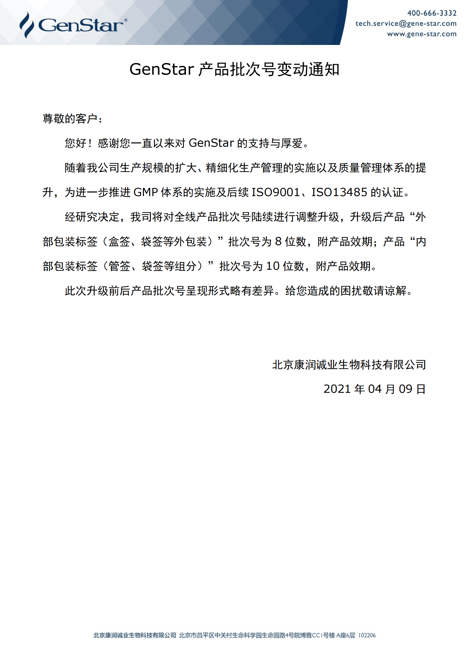 GenStar產(chǎn)品批次號變動(dòng)通知